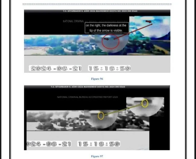 “Orijinal ve geliştirilmiş Daran-2 askeri üssü kamera kaydı gerçek kayıttır ve segmentin hiçbir noktasında düzenlenmemiş veya kurcalanmamış olup klip karelerinin diziliminde süreklilik göstermektedir. Dara CCTV görüntüleri 15:18:24’te kurban Narin Güran’ın evinin yakınında bir kişi tarafından karşılandığını gösteriyor.