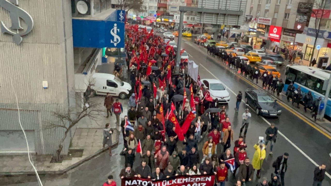Türkiye Komünist Partisi (TKP), NATO’nun kuruluş yıldönümünde Ankara’da kitlesel bir yürüyüş ve eylem düzenledi. Sakarya Meydanı’nda yurttaşlara seslenen TKP Genel Sekreteri Kemal Okuyan, Türkiye’nin güvenliğinin NATO ile değil, ancak bağımsız bir hatla sağlanabileceğini vurguladı.